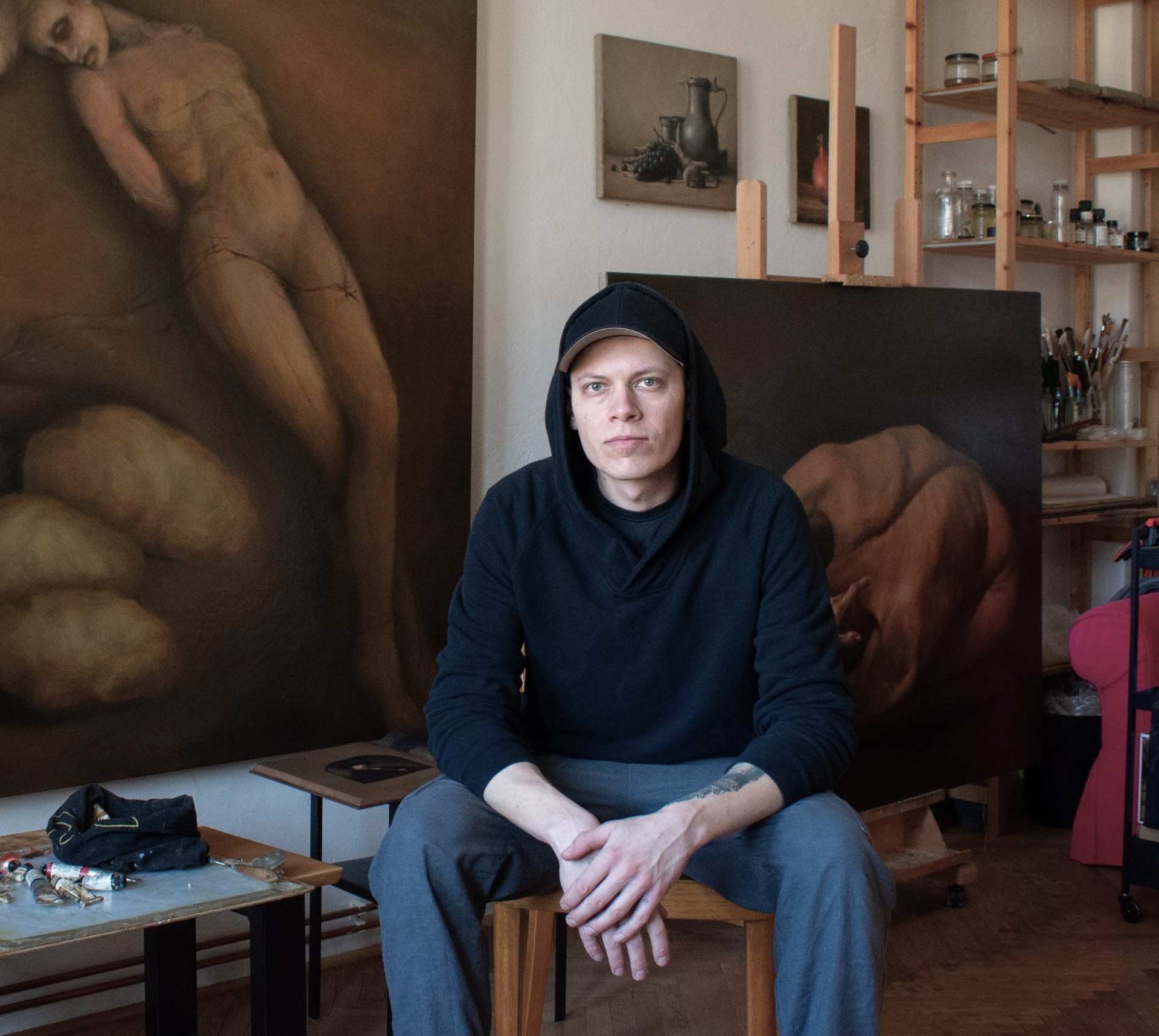 Jmenuji se Adam Kachlík, k volné tvorbě mě vedlo nejdříve studium v atelieru sochy MgA. Natalie Chalcarzové, na ústavu architektury stavební fakulty VUT. Možnost využít tradiční techniky v současné malbě jsem začal vnímat díky tvorbě severoevropských malířů, jako je Michael Kvium a Odd Nerdrum. Nedílným krokem byla figurální kresba na Fakultě výtvarných umění VUT, pod vedením Mgr. et MgA. Jána Lastomírského.